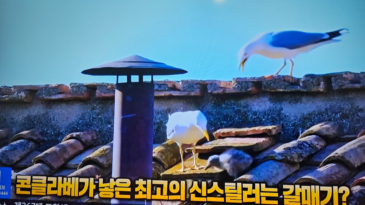 한편, 콘클라베 비공개 회의에서 새 교황이 선출되면 흰 연기를 피우게 되는데 추기경단 1차 투표가 진행되던 시스티나 성당 굴뚝에서 검은 연기가 피어 오르기 전에 새끼를 포함한 갈매기 가족들이 나타나 베드로 광장에 모인 대중들의 시선을 사로잡으며 신스틸러(Scene-Stealer)로 등극하였다.
